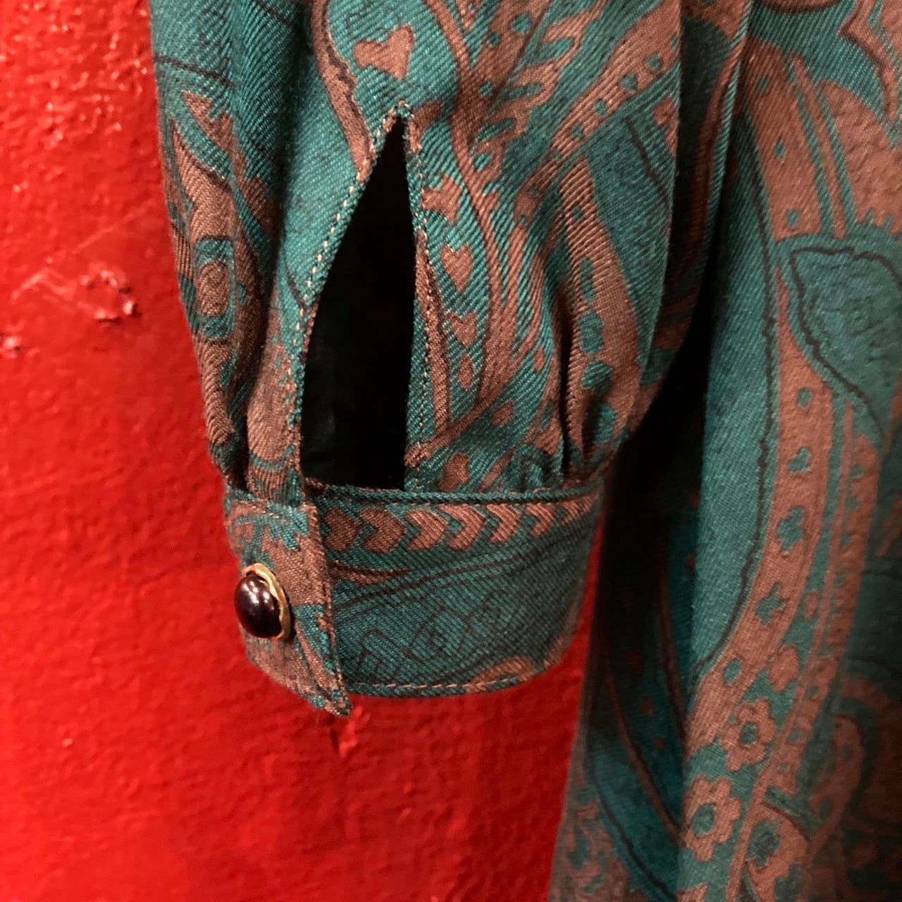 *上品なターコイズブルーとブラウンのペイズリー柄が美しい、
